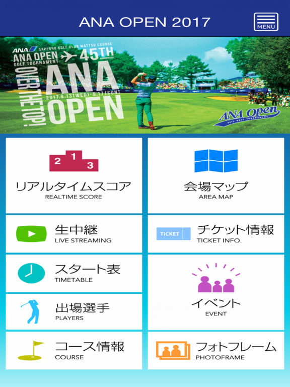 ■説明 ANA OPEN 2017の大会公式アプリ(無料)です。 2017年は9/13(水)~9/17(日)の日程で、札幌ゴルフ倶楽部 輪厚コースにて開催されます。 リアルタイムスコア、会場マップ、イベント情報、フォトフレームなどANAオープンをよりお楽しみいただくための様々なコンテンツが満載です。 ■主な機能 ○会場マップ ○リアルタイムスコア ○チケット情報 ○生中継 ○イベント情報 ○スタート表 ○出場選手一覧 ○コース情報 ○フォトフレーム など ■注意事項 このアプリケーションは3G、LTEネットワークまたはWiFiを利用してインターネットと接続します。 また、このアプリケーションは一部の情報表示にGPS位置情報を利用します。 ■動作環境 iPhone、iPad、iPad mini対応(iOS10.0以上) ※上記端末であっても、インストール済みの他のアプリの影響によって正常に動作しない場合がございます。何卒ご了承ください。 ■免責事項 ・ANAは、当アプリに情報を掲載する際には、細心の注意を払っております。しかしながら、それらの情報が正確であるか、最新のものであるか、有用なものであるか、安全なものであるか等につきましては、一切保証致しません。 ・ANAは、お客様が当アプリをご利用になったことあるいはご利用になれなかったことにより生じるいかなる損害についても一切責任を負うものではありません。 ・ANAは、お客様への予告なしに、当アプリで公開されている情報の変更、削除等することがあります。また、当アプリの公開を、事由の如何にかかわらず、中断あるいは中止させていただくことがあります。これらの情報の変更、削除、公開の中断又は中止により、お客様に生じたいかなる損害についてもANAは一切責任を負うものではありません。 ■著作権・商標等について ・当アプリに掲載されているコンテンツ(文書、映像、音声、プログラム等)は、各国の著作権法、関連条約・法律で保護されています。これらのコンテンツについて、私的使用その他法律によって明示的に認められる範囲を超えて、権利者の許可なく複製、転用等する事は法律で禁止されています。尚、当アプリに掲載されているコンテンツの内容を雑誌、書籍、CD-ROM等へ転載、掲載する場合は、事前にANAの書面による許諾が必要となります。 ・当アプリに掲載されているコンテンツの利用は、ANA又は第三者の特許権、商標権、又は著作権等について、その使用を許諾したり、譲渡したりすることを意味するものではありません。 ■準拠法及び裁判管轄 ・当アプリの利用並びにこの利用条件の解釈及び適用は、他に別段の定めがない限り、日本国の法律に準拠するものとします。 ・当アプリの利用に係る一切の紛争については、他に別段の定めがない限り、東京地方裁判所を専属管轄裁判所とします。