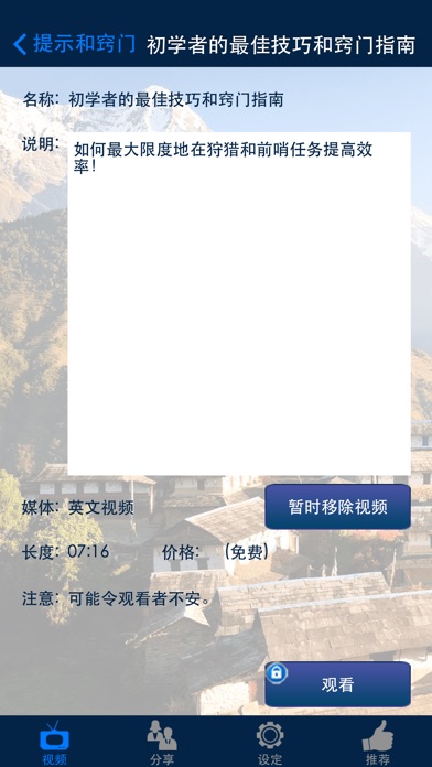 这是一个非官方的【孤岛惊魂4】游戏视频攻略。 《孤岛惊魂4(Far Cry 4)》为《孤岛惊魂》系列新作,本作的舞台从小岛搬到了一个位于喜马拉雅山的架空地区“Kyrat“,它由一个自封为王的人,Pagan Min,所统治,同时也是一个无法制、残暴的野蛮地区。 目前已可于Steam(http://store.steampowered.com/app/298110/)上购买。 这非官方的孤岛惊魂4游戏视频攻略,参考高级玩家的策略和技巧,让你增加玩游戏的趣味。 这攻略暂时收编了大约80个英文视频。当有更多有趣的资料时,我们会继续更新本攻略。 免责声明: 请注意,这不是一个【孤岛惊魂4】的游戏,也不是官方指南,所有【孤岛惊魂4】的商标和版权均由 Ubisoft 所拥有。本指南仅提供游戏的探索和提升玩家的乐趣。所有的人物,地点,图像和视频游戏内容,其版权均为其各自所有者拥有,使用此游戏指南仅属于合理使用准则范畴内。感谢您的阅读!