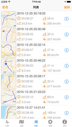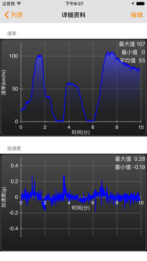 本应用程式为一款多功能速度计,具有以下特点: 1) 可纪录多项移动数据,如:距离、速度、加速度、路径、座标、高程、地点及时间…等。 2) 即时显示移动数据、路径与动态曲线图,完整掌握所有移动资讯。 3) 可设置速限警示值,并于速度超过警示值时发出警告。 4) 可选择公制或英制单位。 5) 使用者亦可针对纪录资料加入文字描述或语音备忘。 6) 所有数据均可汇出(csv格式),以作为后处理使用。