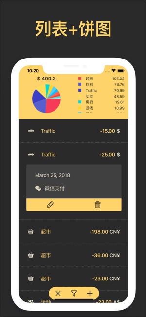 App store 编辑推荐记账软件 没有内购,一次付费,所有功能可用 * 独有的家庭共享功能,可以让你和家人一起记账 Costgram 可以添加你的另一半,或者其他家庭成员,在自己的手机上记录的收支情况,并且共享,这样全家的开支就可以一览无余,也可以方便的查看和对比,知道什么时候花的钱,花的什么钱,谁花的钱,下一步怎么计划都井井有条。 * 独特设计的动态趋势图,让你的收支情况跃然纸上,一览无余 记了很久的帐,怎么样才能对整体收支情况一目了然?我们希望 Costgram 的动态趋势图可以给你这个答案。 动态趋势图,通过最简单的交互 - 左右滑动,即可看到连续的时间范围内,收入和支出呈现什么…