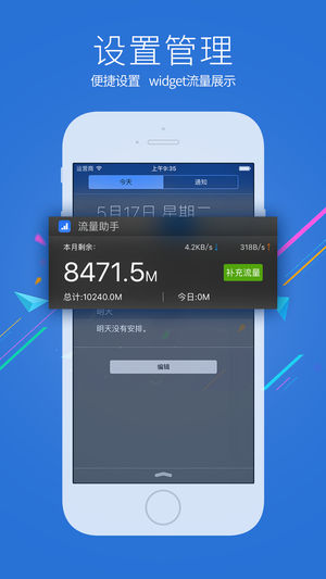 时时监控流量使用情况,杜绝软件偷跑! 【产品简介】 流量助手是一款专门为用户定制的集三网流量监控、流量提醒、网络测速等功能于一身的软件。能全面管理您的流量,极大方便您了解流量使用情况及网络情况。 流量助手是移动、联通、电信、全民流量充值、网购平台APP,高折扣、价格优惠。再不受wifi束缚,随时无线上网神器。 【亮点功能】 1.流量监控:支持三网流量监控,实时监控,帮助您精确定位流量地图; 2.流量提醒:准确流量预警,帮助您及时避免流量超额; 3.网络测速:专业网络测速,帮助您轻松了解网络状况; 4.智能推荐:采用智能算法,智能推荐所需流量包,更加贴心;