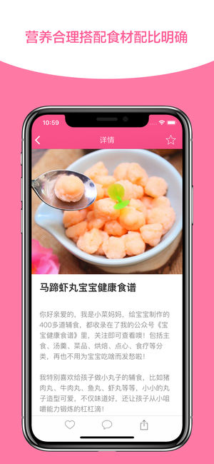 宝宝健康成长是父母最为关心的事情,0-3岁是孩子生长发育最快的年龄段,这一时期孩子的营养摄取,直接决定了大脑发育和免疫机制的建立,以及日后的身体健康,宝宝营养食谱在这个时期尤为关键。 产品功能: - 根据宝宝不同时期,针对性的提供对应食谱,主要分为婴儿、幼儿、 儿童三大特殊成长时期。 - 烘焙食谱,妈妈爱做,宝宝更爱吃,一起动手做出可口的甜品。 - 食谱内容全面,食物的营养介绍,食材配比,制作步骤都非常详细,一学就会。 - 支持食谱收藏功能,适合宝宝的食物就为宝宝留下来吧! - 界面简洁精致,使用简单,新手妈妈们必备。 -支持免费七天去除广告功能。 在此,祝愿每一位宝宝都健康快乐的成长!…
