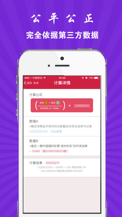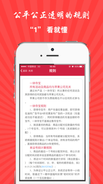 一块夺宝专业版,一种全新的众筹购物模式,更加便利和好玩。 1、一块夺宝,你只需花1元就能有机会获得超值的商品,0元购物,抢到就赚到; 2、丰富的商品应有尽有,无论你是想要高大上的数码产品还是人人需要的日用消费品,都能满足你的需求; 3、公平公正有保障,以“老时时彩”数据作为公正数据源,采取公开透明的算法,保证众筹分配结果的公平和公开,让你玩的开心,玩的放心; 4、分享到微信朋友圈,QQ空间就可以免费获得夺宝币,赶快邀请小伙伴一块探讨夺宝攻略,分享你的夺宝秘籍吧; 5,让您的朋友来分享您的喜悦把,已经有超过1万多朋友进行了分享! 6,新版用户有福气了,晒单的同时除了获得免费的夺宝币哦,本版本还发出了1百万个新春红包,赶快来玩吧。 用户3521858503 一块夺宝人人爱,公平公正挺实在,都用一块钱来夺宝,整钱化零继续搞!感谢一块夺宝的一次次关爱,挺你没商量,与你同在! 用户评论: 用户1661086065 一块夺宝的优点在于有很多可以获取夺宝币的方式。 没钱也能玩 用户449580041 小赌怡情,图个乐呵。每次都抱是着玩笑的心态参加,中了是个惊喜,没中是个笑话,一天一块,两包辣条而已,说不定下个就是自己 用户: 活着才能有所追求 良心平台,公平公正公开,值得信赖尝试,下一个中奖的就是你。相信自己好运来临吧!