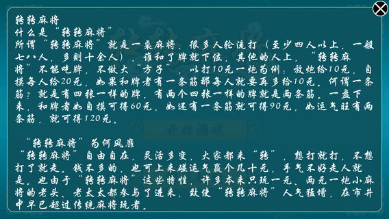湖南伢子自己的工作室,地道的家乡味道,我们的理念是,要让每一个家乡的朋友都能在我们的作品中找到自己老家的味道,特别是让那些身在外地,甚至身处海外发展的老乡们,想家的时候消遣娱乐一下,听一听原汁原味的家乡话,打一打地地道道的家乡牌!同时希望愿意体验和尝试湖南味道的朋友乐在其中!祝愿所有外出的朋友,平平安安显身手;没有外出的朋友,健健康康展宏图! 游戏简介 “转转麻将”为何风靡 “转转麻将”自由自在,灵活多变,大家都来“转”,想打就打,不想打了就走。钱不多的,也可上来碰运气赢个几十元,手气不好走人就是。也由于“转转麻将”这些特性,许多本来只玩一元、两元一炮小麻将的老头、老太太都参与了进来,致使“转转麻将”人气猛增,在市井中早已超过传统麻将玩者。 什么是“转转麻将” 所谓“转转麻将”就是一桌麻将,很多人轮流打(至少四人以上,一般七八人,多则十余人),谁和了牌就下位,其他的人上,“转转麻将”不能吃牌,不做大“方子”,以打10元一炮为例:放炮给10元,自摸每人给20元,如果和牌者有一条筋那每人就要再多给10元。何谓一条筋?就是有四张一样的牌,有两个四张一样的牌就是两条筋。一盘下来,和牌者如自摸可得60元,如还有一条筋就可得90元,如运气旺有两条筋,就可得120元。
