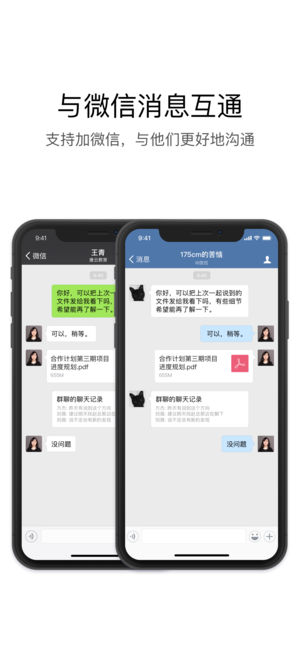 企业微信,是腾讯微信团队为企业打造的企业通讯与办公工具。与微信一致的沟通体验,丰富的OA应用,和连接微信生态的能力,助力企业高效沟通与管理。 中国工信部、中国银行、长安集团、阳光保险、韵达速递、太古集团、中粮糖业、链家集团、欧普照明、云南白药、南方航空等百万知名企业组织正在使用企业微信。 1. 熟悉的沟通体验,和同事一起高效聊工作 【和微信一样易用】与微信一致的沟通体验,简单易用 【信息沉淀】电脑与手机多平台消息实时同步,并云端保存 【高效沟通】发出的消息可以查看对方的已读未读状态,沟通更高效 【企业通讯录】支持批量导入企业通讯录并统一管理,找同事更准确方便 2. 微信插件继承企业号所有能力…