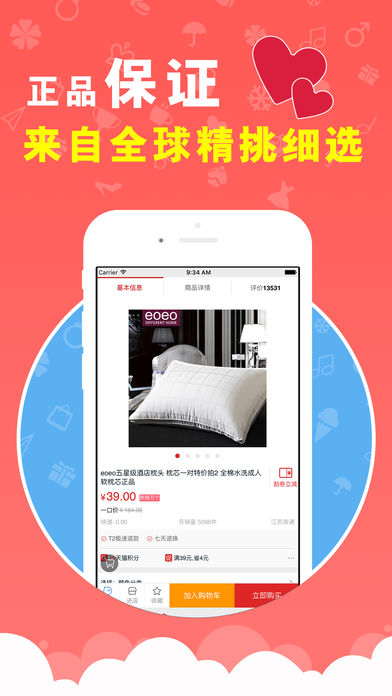 ▶家居商品9块9,包邮您拿走!限时疯抢中!小伙伴们都买疯了! ▶每天千余款9.9元包邮商品更新推荐,藏不住的诱惑就在9块9包邮! ▶淘宝专业团队,二年时间潜心打造,只为给您更好的购物体验。 ▶精心筛选优质淘宝店铺,去芜存菁,为您节省大量时间成本。 ▶同类商品、同店商品比比看。远离冲动消费,三思而后买才是购物的王道。 ▶推荐搭配,让您的购买更加物有所值。 一站式服务。 ▶优化页面加载,给您带来更快、更稳定的浏览,更少的流量花费。 ▶界面简洁,上手快,更有诸多功能等您发现。 【应用特色】 1.“职业砍价师”心黑手狠帮您砍价低至1折 2.“职业验货师”9大工序帮您验货,经得起千锤百炼 3.“职业选款师”帮您从万千淘宝商品中精挑细选 4.“开卖提醒”让你不再错过开卖时机 5.网罗世间潮品,凸显你的品位 没错,这就是9块9包邮。只为更好的购物。