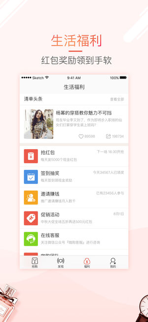 咖购专注于网购省钱,为用户提供品牌独家限时低价折扣特卖秒杀,汇聚淘宝天猫等一线品牌商为买家提供比1元购更实惠的超嗨购物盛宴,是全国首款限时限量品牌低折扣特卖的最省钱购物应用。 比卷皮更低折扣,比唯品会更高品质,比蘑菇街更实惠,比折800更低价格,比返利更省钱,每天几十场次的一元疯抢嗨爆全场,咖购是你必备的手机购物省钱神器。 咖购省钱方式 【折扣】每天十余场品牌限量秒杀抢购。 【返现】返现高、秒到账、不丢单、实时查单,红包优惠券抵扣后再高额返现。 【红包】现金红包抢不停,只为让你购物省到家; 【优惠券】淘宝天猫京东大额专享优惠券领不完; 【渠道价】卖家专为咖购会员设定独家专享渠道价;