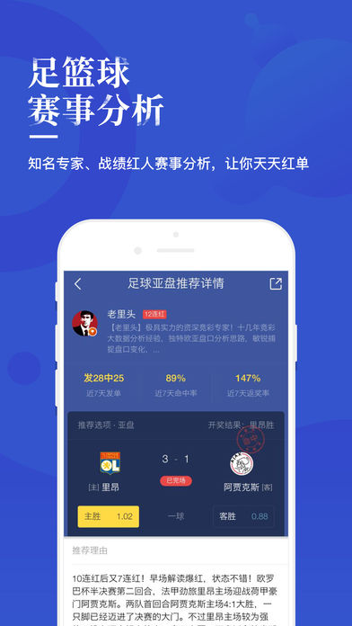 1、天天盈球是一个集足球、篮球各大名家分析解读、专业情报资讯、彩民社区聊球、海量赛事分析等服务于一体的综合性体育信息服务产品。 2、汇聚众多知名荐球专家、彩票分析师、体育主持人、解说评论员、运动员,为你带来最精准的赛事分析。 3、独创二串一盈利计划上线后,持续稳定盈利,收益率领跑各种理财产品。新用户还有免费体验活动! 4、即时情报、专业指数、小道消息,与全国球友在此一起热聊,打造您的专属红单。
