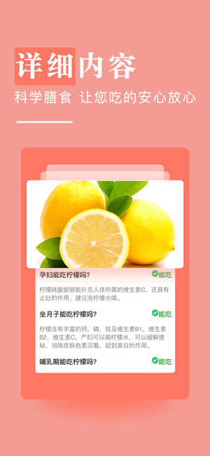 怀孕了面对饭菜甜点,到底该不该吃呢,会不会对宝宝不好呢?用app查一查,立马就知道啦~还有食材的做法,让宝妈们吃得安心,也吃得美味! 生完宝宝后坐月子,宝宝饮食的禁忌都可以查得到噢~ 陪伴您孕期的每时每刻~