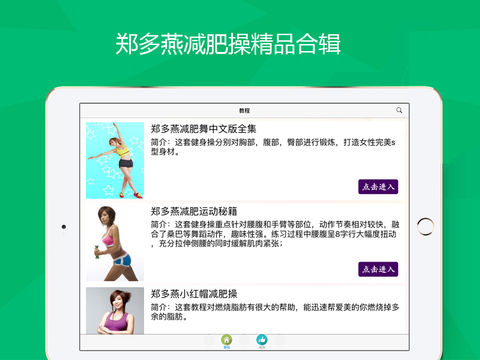 夏天要到了,亲爱的漂亮MM们,又可以摇摆飘逸的连衣裙,穿性感的超短裤了。赶紧动起来,不要让臃肿的身材剥夺我们绽放美丽的权利哦~~这里收集了郑多燕最新最全的减肥系列教程,快快让我们的脂肪燃烧起来吧。 每日7分钟健身,我的完美减肥计划课程轻松塑造人鱼线,让你更瘦更美,成为辣妈吧。
