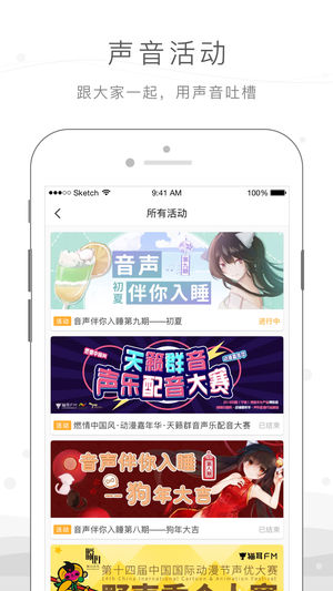 海量资源,高清音质~ ( ̄∇ ̄~) 睡前神器,用过就懂 (~ ̄∇ ̄)~ 「剧好听」 你追的小说和漫画在这里都有声音剧,关灯上床躺着慢慢听。纯爱、悬疑、灵异、少女、治愈应有尽有。 「陪你入睡」 睡前时光,听着小姐姐或者男神的温柔声音入睡; 深夜难眠,来一段催眠的雨声树林声降降火。 「经典必听」 有选择困难?不怕。猫耳为你筛选出不容错过的精品内容,七大分类精彩纷呈,总有一款适合你。 「语音直播」 汇集中日知名CV、二次元、段子手、催眠等不同领域的大咖主播;开启语音连麦,和大咖互动,用声音交友;做主播,被搭讪被打赏,从此生活奔小康! 「随时随地」 排队堵车做家务时利用碎片时间听书充电…