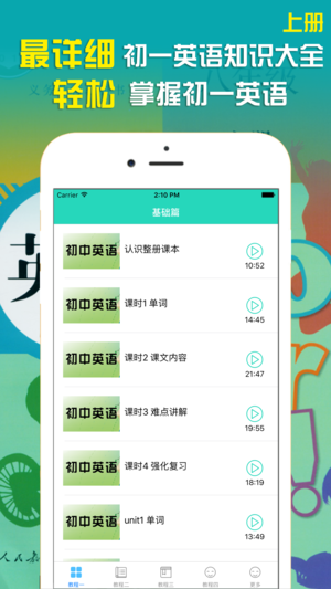 【汇集众多精品七年级英语上册课堂教学视频】 视频包括七年级英语上册各章节课程讲解,真题练习 -涵盖了七年级英语上册各章节内容的知识点总结; -----十分适合初中学生、教师使用。 想学好英语的同学们,可以跟着教学视频一起学,祝同学们早日学有所成!