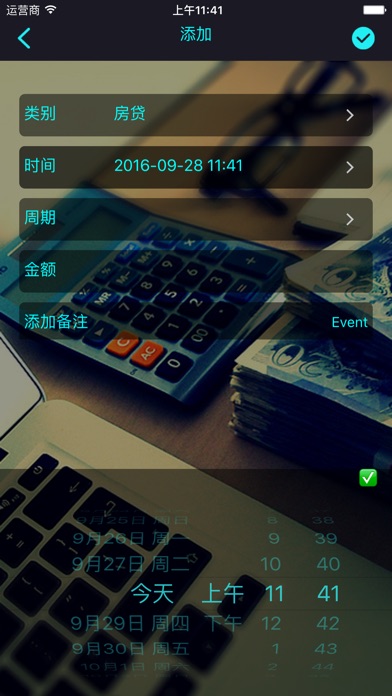 支持ios10! 最后一天半价!赶快下载吧! 每次因为忘记按时还贷而郁闷吗? 不用担心,来用贷款提醒管家吧! +++++功能+++++ 1. 各种贷款分类:车贷、房贷、信用贷、教育贷及其它! 2. 选择还贷类型,记录金额并设置提醒时间! 3. 简单易操作,好用又省心!