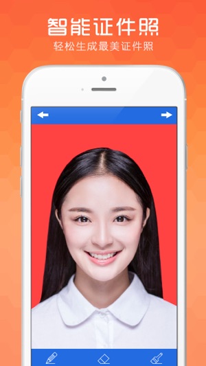 ~~~~~~~~这是一款操作方便、全程免费的证件照APP~~~~~~~~ 有了这款APP,随时随地都可以拍出最美的证件照,自动保存,一键转发,方便快捷! *28款常见证件照尺寸,满足您全方位的需求 *可挑选已有最美照片、或拍摄当前最佳状态,一键合成证件照 *自动识别人脸,自动合成标准证件照 *智能抠图,自动美颜,不影响证件照使用 *操作方便快捷,流程简单,一目了然 !!!即使不用照相馆也能拍出专业级别的证件照,赶紧下载来试试看吧!!!