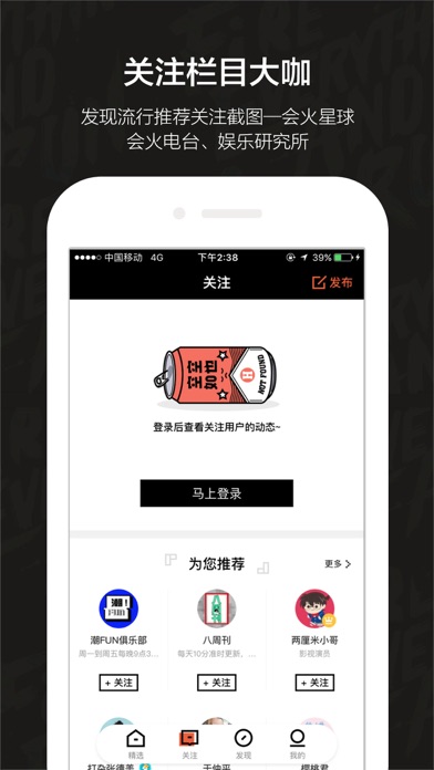 【会火app】娱乐先知 老关八升级成会火啦,你熟悉的娱乐内容、互动讨论都还在!!还有更多网络综艺、短视频、音频、漫画、动画等等多种类型的节目,帮你发现更多有会火潜质的人和事。赶紧下载体验吧~ - 会火APP,是集合娱乐内容、 活动社区、趣味技能分享为一体的泛娱乐新青年文化媒体,基于海量内容及数据的分析,形成泛娱乐领域“秩序”及“规律” 的总结,从而挖掘更多潮流趋势,聚合风向标,发现下一个流行。 啥会火?谁会火?就上会火app! 会火,发现流行,娱乐先知!