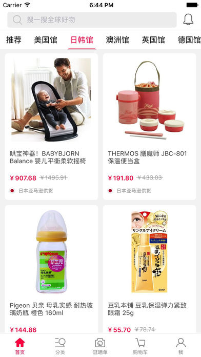 美国购物-正品海购免税店,母婴美妆海外代购平台 美国购物是一款专注于美国购物的海淘平台,涵盖了美国百余家知名电商,如:美国亚马逊、6pm、ASOS、eBay、Ashford、Jomashop等,每日为您精心挑选上百款美国品牌商品,足不出户也能轻轻松松购买美国品牌商品。官网价格实时同步,一键下单,海外直邮到家! 新用户注册还专享免邮大礼包哦! 美国购物app推荐的品牌商品均由美国知名电商官网直邮发货,通过合法报关,由我们精心遴选的国际转运合作伙伴直接送货到您家。此外小伙伴还可以在个人中心随时跟踪已购买的海外直邮商品国际物流状态等信息,真正实现简便、安心、快速、实惠的海外购物体验。 【产品特点】 1.海量sku商品:汇集美国全网品牌商品,总有你想要的商品; 2.海外直邮:美国本土一线电商直邮发货,假货零概率; 3.官网价格实时同步:真正做到零差价,轻松买到美国高性价比的正牌商品; 4.物流透明跟踪:国际物流全程透明可跟踪,平台全程不碰货物; 5.一键下单:省去海淘繁琐步骤,一键下单,即可同步享受美国好物; 6.轻松社交分享:可轻松分享到微信、微博、QQ空间,非常方便地分享好货及评论。 【联系我们】 官方网站:www.biyabi.com 官方微信号:biyabicom 粉丝群:188542109 官方微博:http://weibo.com/biyabi 您的反馈对我们很重要,如果您有任何问题或建议,欢迎通过以上方式来联系我们。
