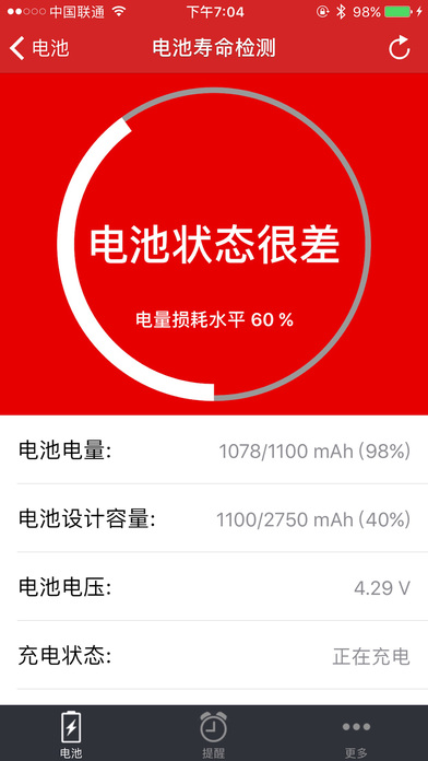 您还在当心手机没电么? 您想知道电池是否使用正常么? 没有什么事是比手机没电还可怕的了! 现在免费下载超级电池医生可以帮助您监控关于电池的相关信息. 超级电池医生是一款用于查看电池信息和健康指标的多功能电池管理工具,体积小,简洁方便,来帮助您更好的管理您的手机. 主要功能: - 电池寿命查询,显示电池电量损耗度 - 精美的iPhone/iPad充电时钟: 多种精美的充电时钟主题界面, 并支持自定义壁纸, 让充电过程不再枯燥 - 准确预估电池可用时间, 外出不必担心电量不足 - 电池充满电自动提醒 - 充电定时提醒, 设置后每天唤醒您按时充电, 暖心电池先生 - 系统信息查询: 包括设备名,CPU,内存动态信息,磁盘使用度,网路IP地址信息等 * * * * * * * * * * 如果您的觉得超级电池管家很好用, 希望您给予五星好评. 您的五星好评是我们更新并升级这个应用的动力,谢谢您的理解与支持! 如果您在使用中出现任何问题,或者有任何方面的意见建议,通过以下方式都可以联系到我们,我们将在24小时内给您回复. 1.新浪微博:@elinasoft 2.电子邮件: support@elinasoft.com 3.iMessage信息: support@elinasoft.com