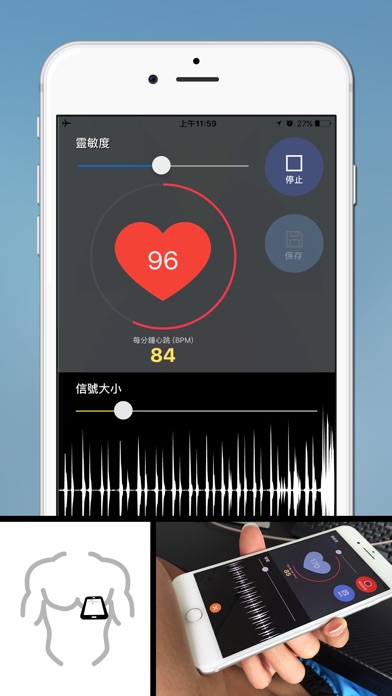 BabyBeat使用麦克风聆听身体内微细的声音,可视化你宝宝在子宫的声音(心跳,运动,踢腿等等)。 你可以记录宝宝在子宫内的声音,可以重放录音,亦可以通过电邮,微博或WhatsApp的分享或备份。 应用程式同时能够量度成人心跳,只要将麦克风放在胸部左边,便可量度每分钟心跳。 应用程式最适合使用在怀孕晚期(30周后),怀孕早期,成功的机会率较低,视乎个别情况而定。 请在一个安静的房间,才会得到更好的效果。 切换到飞行模式禁用所有的通讯,并为您的宝宝一个安全的环境。 移除电话的保护壳,可以增大麦克风的灵敏度。 请留意,此应用程式不是医疗仪器,不能替代任何类型的医疗咨询。 介面支援中文简体。