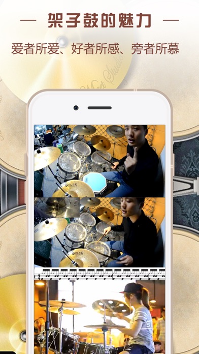根据现实所存在的情况,为了让更多的学员轻松学会架子鼓,我们特别精心打造了一部视频教程。本教程以通俗易懂的语言、丰富多彩的画面一步步示范。 它不仅用于自学者,也是学校、短期培训班在教学中主要学习教程。教材适合不同年龄段人学习,不管你是几岁小孩,是事业有成的朋友,是退休的长辈都能快速掌握 。