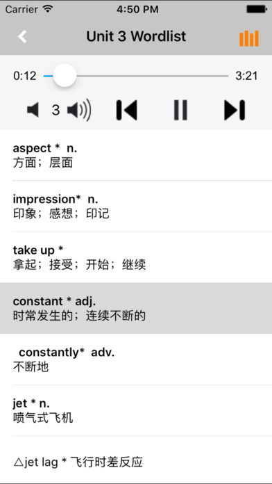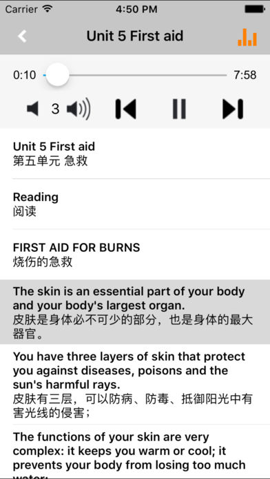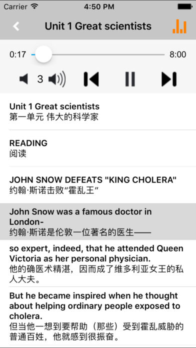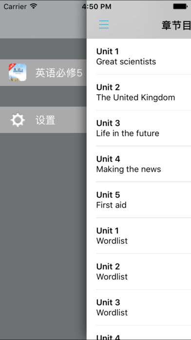 *全套原版录音和教材完全同步,助您成为英语大明星。 *根据课本配套,此应用为人教版高中英语必修5完全最新版。 *涵盖全部内容,包括全部课程对话和常用句子、单词列表、复习章节等。 *操作简便、携带方便,永远告别磁带和光盘。 【新梦想】教育应用系列完全同步教材制作,内容完全一致,您可以使用它来进行课文学习,播放教材配套音频,发音纯正地道,寓教于乐,让学习更高效和有趣。 该应用界面简洁操作简单,让孩子在舒适的环境下学习,能点,能读,更能说,是中学生的好老师、好家长。 功能特色 ■中英文双语对照,同步语音,准确清晰。 ■内容与录音质量放心,地道纯正、原汁源味。 ■语音播放灵活,即点即学,跟读模仿随时随地。 ■完全同步教材制作,内容完全一致。 ■后台播放人性化,锁屏状态可随身听读。 ■界面简单大方,意图明了,功能实用,操作方便。 用我们的责任心、爱心、细心地去点燃学生们的梦想,让有梦想的孩子们慢慢的变化!学习成绩逐步提高,慢慢的,他们又有了新梦想,如此反复...... 让中学生中英文双语对照,发音准确清晰,是中学生自学的好老师,把家长从繁琐的辅导解答中解放出来! 【新梦想】教育应用系列,快乐中学习,轻松点一点,英语真容易! —【新梦想】教育应用系列— 适用于多种教学场景,您可以更加便捷地进行碎片化学习,期待您的使用! 致力于为中国K12教育提供最优秀的互联网教育软件! 新梦想乐园,伴随青少年健康快乐的成长! *****软件功能***** 1.通用应用,同时支持iPhone,iPod touch,iPad设备 2.可以自动顺序播放功能 3.可以自动记录播放位置,不用担心下次找不到听到哪 4.支持离线播放,即使不联网也一样听,到哪都不怕 5.支持手动拖拽前进、后退播放 6.在兼顾软件容量以及更多课程的情况下,我们最大限度保证音频的高质量,每个有声读物片段都是经过我们精选和亲测 7.最最重要的功能,可以拖动字幕定位,音频随之定位 本应用与《普通高中课程标准实验教科书人教版高中英语必修5》课本同步 新版目录: Unit 1 Great scientists Unit 2 The United Kingdom Unit 3 Life in the future Unit 4 Making the news Unit 5 First aid Workbook Unit 1 Great scientists Unit 2 The United Kingdom Unit 3 Life in the future Unit 4 Making the news Unit 5 First aid Appendices Notes to the texts Grammar Words and expressions in each unit Vocabulary Irregular verbs Changes in international phonetic symbols for English