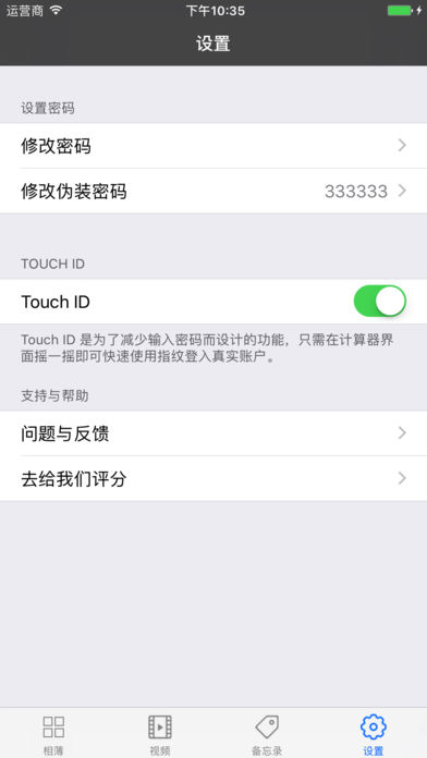 《计算器 Pro》 是一款计算器与保护隐私照片视频的应用的集合。它既是一款计算器,当输入你设置的密码后,它又是一个隐私保护工具,可以将你的照片、视频、密码存储在内,并且首创在打开使用应用期间无缝切换真实/伪装账户,丝滑流畅,毫无破绽。当你正在浏览你的秘密时,只需(切换到多任务)或者(推出到桌面)或者(下拉通知中心)或者(上拉控制中心)即立即弹出计算器界面挡住你的秘密不让别人发现。 产品特色: 1、真实/伪装账户无缝切换; 2、摇一摇指纹登入更安全; 3、不必担心忘记登入密码,内置隐藏式自助找回密码功能; 4、界面简洁容易上手,为你的隐私保驾护航; 这也许是世界上最好用的隐私保护软件,只有用过它的人才知道它有多安全! 私密计算器可以帮你把私密照片和视频隐藏在一个正常的计算器后面。 一个应用,两种功能,别人即使打开也只是个普通的支持运算的计算器,只有您自己输入正确密码后才能进入查看视频和相册。并且您还可以设置伪装密码账户。 ● 支持Touch ID 指纹登入 ● 支持真/伪双密码无缝切换 ● 支持无限制添加相册和视频且无广告 它看起来就是一个普通的并具备计算功能的计算器,而且必须输入您设置的6位数密码后才能进入查看相册和视频。设置伪装密码后,您还可以放心地用伪装密码登入,让别人看到事先添加的公开的照片,而且隐藏了设置界面的某些选项,所以你完全不必担心里面的照片和视频会被人发现,可以放心的把手机借给别人或者给别人用。 多重安全保护: • 密码保护.设置一个6位数密码,在计算器界面输入正确的密码才能进入主界面查看照片和视频. • 伪装密码.你可以设置一个伪装的密码,并用伪装的密码从计算器登入,在里面放一些可以让别人看的照片和视频. • 真实密码/伪装密码无缝切换:当你用真实密码登入后,可在下次从后台登入或重新启动APP时,输入伪装密码登入,主界面自动隐藏主密码的照片和视频,加载伪装密码的照片和视频(且通过伪装密码登入时,看不到修改密码等功能,保护安全),反之亦然. 完美使用体验: 照片: • 支持无限量创建相册,相册无限量添加照片 • 支持修改相册名称、选择一张照片设置为封面、添加照片 • 支持手势滑动多选快速添加照片,且添加的照片为高清图,不失真,保存图片原始分辨率 • 集成堪称完美的照片浏览器,可全屏欣赏高清大图,照片支持手势放大缩小 • 可分享照片至系统相册、信息、邮箱、打印机、iCloud和其他社交平台 视频: • 支持无限量添加视频,对于重复添加的视频仅保留一份,节省手机存储空间。 • 可分享视频至系统相册、信息、邮箱、iCloud和其他社交平台 Notes: • 如果你正在浏览里面的照片和视频,这时候有人来了怎么办?只需要下拉查看系统通知或者上拉查看系统控制中心即可回到计算器界面,当别人要强行登入时,也可告诉他伪装密码,用伪装密码登入,你的秘密永远不会被发现。 • 将照片或视频添加至私密计算器后,请记得在系统相册中将其删除。 • 请不要在同一个相册中存放太多的照片,以避免出问题。 如果您忘记了密码怎么办? •在计算器界面快速连按5下计算结果文本即可发邮件快速找回密码。 赶快下载体验吧!如果您喜欢这个应用,请把它推荐给您的朋友们~