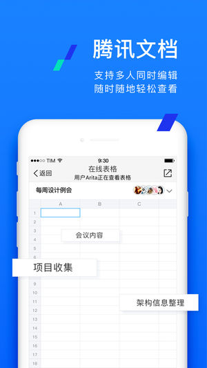 -----TIM是什么?----- TIM是腾讯出品的一款专注办公、多人协作以及沟通的高效率办公软件,腾讯文档(word/excel)、云文件、邮件、电话会议等强大办公功能一应俱全。界面清爽,操作简单,多人团队协作更加便捷,助你分分钟实现效率办公,升职加薪不是梦! 用TIM,不加班! -----TIM有哪些功能?----- 【QQ好友及消息同步】 - QQ登录:支持QQ号直接登录,你的QQ好友及QQ消息都在,聊天更方便; - 多端同步:QQ聊天消息多端同步接收,聊天沟通更轻松; 【腾讯文档】 - 多人编辑:多人可同时在线编辑Word/Excel文档; - Word/exc…