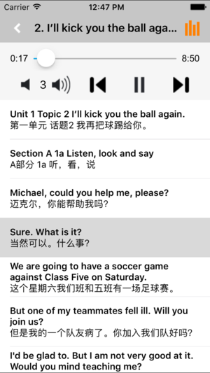 *全套原版录音和教材完全同步,助您成为英语大明星。 *根据课本配套,此应用为北京仁爱版初中英语八年级上册、下册完全最新版。 *涵盖全部内容,包括全部课程对话和常用句子、单词列表、复习章节等。 *操作简便、携带方便,永远告别磁带和光盘。 【新梦想】教育应用系列完全同步教材制作,内容完全一致,您可以使用它来进行课文学习,播放教材配套音频,发音纯正地道,寓教于乐,让学习更高效和有趣。 该应用界面简洁操作简单,让孩子在舒适的环境下学习,能点,能读,更能说,是小朋友的好老师、好家长。 功能特色 ■中英文双语对照,同步语音,准确清晰。 ■内容与录音质量放心,地道纯正、原汁源味。 ■语音播放灵活,即点即…