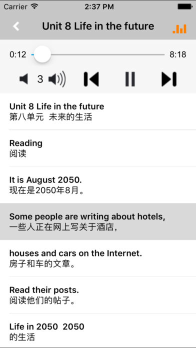 *全套原版录音和教材完全同步,助您成为英语大明星。 *根据课本配套,此应用为沪教版上海牛津初中英语七八九年级上册、下册完全最新版。 *涵盖全部内容,包括全部课程对话和常用句子、单词列表、复习章节等。 *操作简便、携带方便,永远告别磁带和光盘。 【新梦想】教育应用系列完全同步教材制作,内容完全一致,您可以使用它来进行课文学习,播放教材配套音频,发音纯正地道,寓教于乐,让学习更高效和有趣。 该应用界面简洁操作简单,让孩子在舒适的环境下学习,能点,能读,更能说,是中学生的好老师、好家长。 功能特色 ■中英文双语对照,同步语音,准确清晰。 ■内容与录音质量放心,地道纯正、原汁源味。 ■语音播放灵活,即点即学,跟读模仿随时随地。 ■完全同步教材制作,内容完全一致。 ■后台播放人性化,锁屏状态可随身听读。 ■界面简单大方,意图明了,功能实用,操作方便。 用我们的责任心、爱心、细心地去点燃学生们的梦想,让有梦想的孩子们慢慢的变化!学习成绩逐步提高,慢慢的,他们又有了新梦想,如此反复...... 让中学生中英文双语对照,发音准确清晰,是中学生自学的好老师,把家长从繁琐的辅导解答中解放出来! 【新梦想】教育应用系列,快乐中学习,轻松点一点,英语真容易! —【新梦想】教育应用系列— 适用于多种教学场景,您可以更加便捷地进行碎片化学习,期待您的使用! 致力于为中国K12教育提供最优秀的互联网教育软件! 新梦想乐园,伴随青少年健康快乐的成长! *****软件功能***** 1.通用应用,同时支持iPhone,iPod touch,iPad设备 2.可以自动顺序播放功能 3.可以自动记录播放位置,不用担心下次找不到听到哪 4.支持离线播放,即使不联网也一样听,到哪都不怕 5.支持手动拖拽前进、后退播放 6.在兼顾软件容量以及更多课程的情况下,我们最大限度保证音频的高质量,每个有声读物片段都是经过我们精选和亲测 7.最最重要的功能,可以拖动字幕定位,音频随之定位 本应用与《义务教育教科书沪教版上海牛津初中英语七八九年级上册、下册》课本同步 新版目录(七年级上册): Module 1 My life Unit 1 Making friends Unit 2 Daily life Module 2 The natural world Unit 3 The Earth Unit 4 Seasons Module 3 Travels Unit 5 Visiting the Moon Unit 6 Travelling around Asia Module 4 Fun time Unit 7 School clubs Unit 8 Collecting things Vocabulary 新版目录(七年级下册): Module 1 People and places Unit 1 People around us Unit 2 Trevelling around the world Module 2 Man's best friends Unit 3 Our animal friends Unit 4 Save the trees Module 3 Natural elements Unit 5 Water Unit 6 Electricity Module 4 Colourful life Unit 7 Poems Unit 8 From hobby to career Vocabulary 新版目录(八年级上册): Module 1 Amazing things Unit 1 Encyclopaedias Unit 2 Numbers Module 2 Science and technology Unit 3 Computers Unit 4 Inventions Module 3 Culture and history Unit 5 Educational exchanges Unit 6 Ancient stories Module 4 School life Unit 7 Memory Unit 8 English Week Vocabulary 新版目录(八年级下册): Module 1 Social communication Unit 1 Helping those in need Unit 2 Body language Module 2 Arts and crafts Unit 3 Traditional skills Unit 4 Cartoons and comic strips Module 3 Animals Unit 5 Save the endangered animals Unit 6 Pets Module 4 Discovery Unit 7 The unknown world Unit 8 Life in the future Vocabulary 新版目录(九年级上册): Module 1 Geniuses Unit 1 Wise men in history Unit 2 Great minds Module 2 Ideas and viewpoints Unit 3 Family life Unit 4 Problems and advice Module 3 Leisure time Unit 5 Action! Unit 6 Healthy diet Module 4 A taste of literature Unit 7 The Adventures of Tom Sawyer Unit 8 Surprise endings Vocabulary 新版目录(九年级下册): Module 1 Explorations and exchanges Unit 1 Great explorations Unit 2 Culture shock Module 2 Environmental problems Unit 3 The environment Unit 4 Natural disasters Module 3 Sport and health Unit 5 Sport Unit 6 Caring for your health Vocabulary