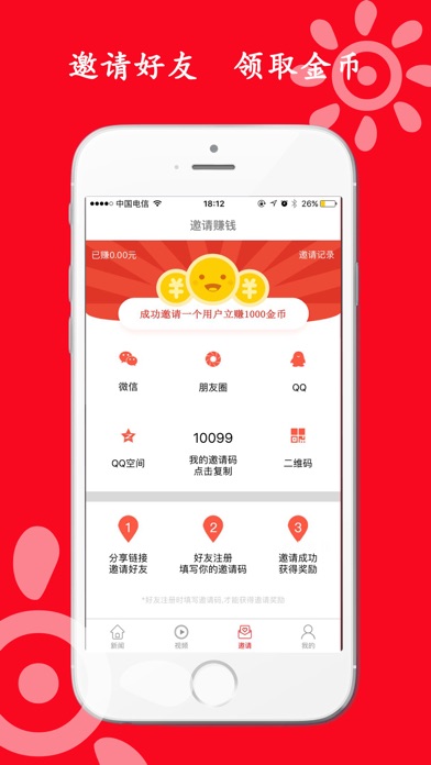 《红包头条》是一款创新模式的生活资讯阅读应用,集合最新的生活、娱乐、社会、养生、时尚等海量新闻看点和头条视频呈现给用户。在阅读资讯的同时,还有丰富的活动、宝箱、福利、等奖励帮助用户在养成良好浏览习惯的同时获取丰厚的奖励。 产品特色: 【海量资讯 精彩纷呈】每天更新海量资讯,让你看不停、笑不完、大开眼界! 【自由订阅 更新速达】有关心的内容可以随时订阅,第一时间获取信息。 【邀请好友 乐在其中】邀请好友奖励现金,好友邀请他人也可以拿到奖励! 【丰厚收益 尽在掌握】每天签到和各种任务和宝箱让你的收益不断飙升!