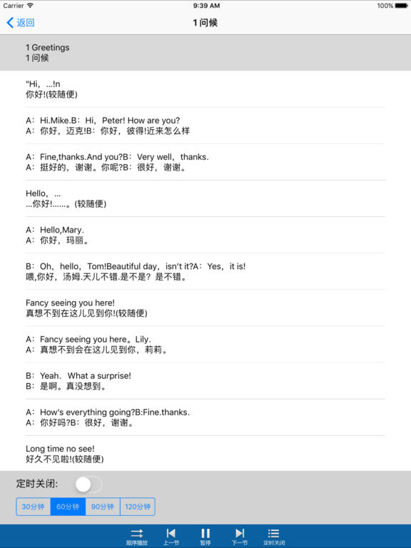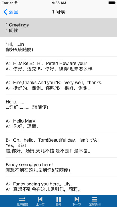 软件特点: ①:语音文本同步朗读,边看边听学习更容易; ②:那里不会点哪里,点击发音; ③:定时播放,学习时间自己定; ④:锁屏播放,眼睛累了耳朵听; 更多精彩内容请下载体验! 英语口语将基本语法穿插于句子的学习之中,并设计了实际场景对话,内容生动,方法科学,侧重于教您英语基本会话,内容涵盖历史,经济,文化,日常生活,社会交往,涵盖全面。 英语是全世界适用范围最广的一种语言,很高兴你能下定决心学习。本文将带领你从零开始,一步一步走入英语的世界。有音标、基础词汇、入门语法学习,也准备了从零开始自学英语的方法。
