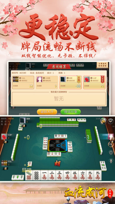 宜昌人民期待已久的包房血流震撼出世! 【最地道】 地道宜昌麻将玩法,血流换三张,仅使用筒、条、万3门牌共108张进行游戏,能碰能杠不能吃,缺门胡牌,胡了可以再胡,带漂翻倍,杠牌底金翻倍,爽快刺激!还有方言配音,要玩就玩宜昌人自己的麻将! 【最好玩】 再也不用苦于配桌,全民手机时代,你可以再手机上随时随地和亲朋好友搓麻将,是传统麻将馆的有力补充。快和亲朋好友一起开房,决一高下吧! 【最稳定】 大厂出品,确保游戏过程更加稳定,专心玩游戏,没有掉线卡顿烦恼。 【最靠谱】 可以录像回放,同IP报警,杜绝外挂,真实可靠。 【最智能】 智能提示、界面大方更具人性化,支持智能单独、分开支付房费。更具人性化,支持智能单独、分开支付房费。
