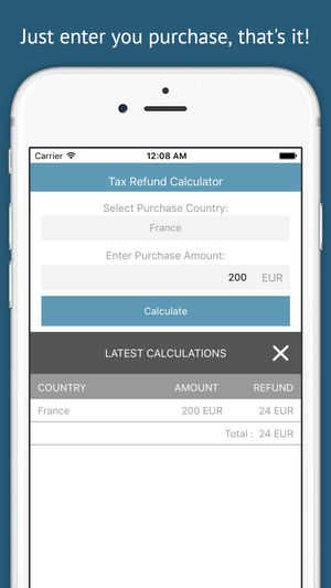 如果您购买的时候你在国外的东西,你可以得到“退税”为您的货物。此应用程序将帮助你计算退税。它是免费的,这是很容易的。只需输入您的购买,它会自动计算。只要你想,你可以输入许多商品。它总结所有这些,计算总退税。38参观人数最多的国家对我们的数据库中。下载的应用程序来计算您的退税。拿回自己的钱! English: If you purchase something when you are abroad, you can get ""tax refund"" for your goods.This application will help you to calculate tax refund.…