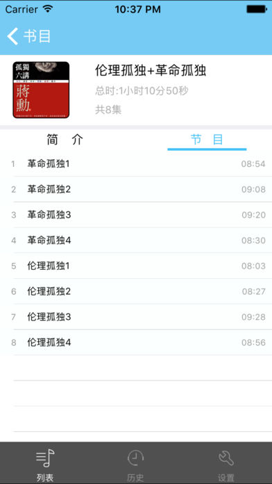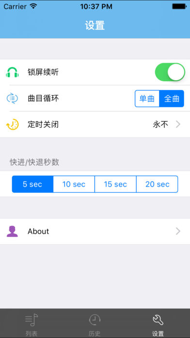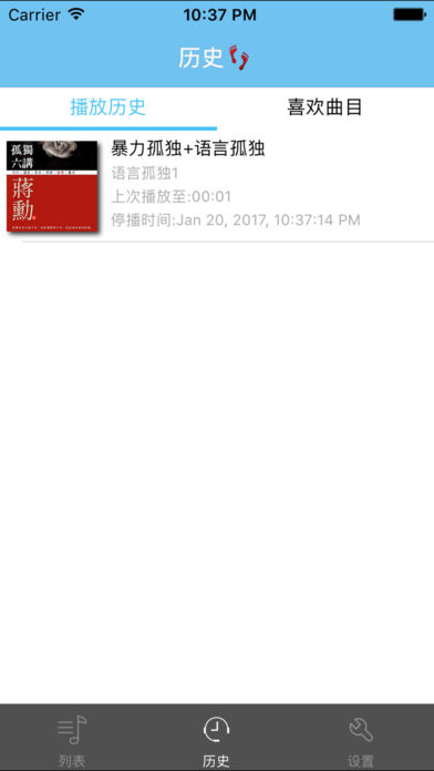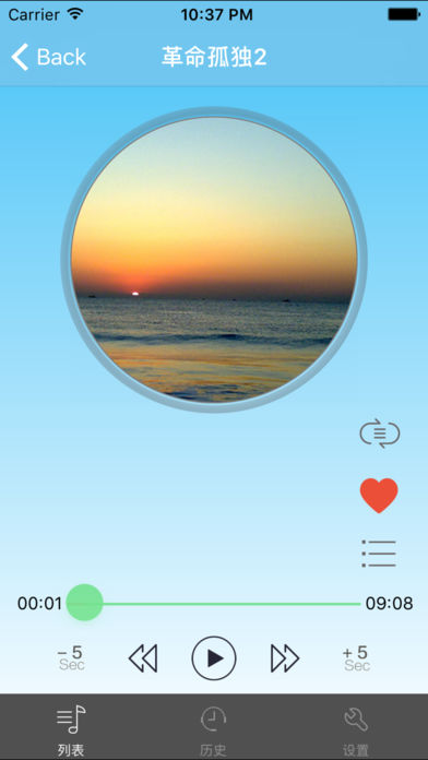 这是一款离线版音乐播放器,其中收藏了蒋勋先生的《孤獨六講》。 播放器具有如下功能: 1.离线播放,不消耗,不盗刷流量 2.可以收藏自己喜欢的曲目, 3.可以自动记忆上次播放结束时间 4.可以后台锁屏续听 5.可以设置播放时间 6.支持耳机线控(播放,暂停,下一曲,上一曲,音量) 7.播放器实现了单曲目循环,专辑循环,快进,快退,跳曲等功能 音频均来自网络,如有侵权,请联系82272109@qq.com