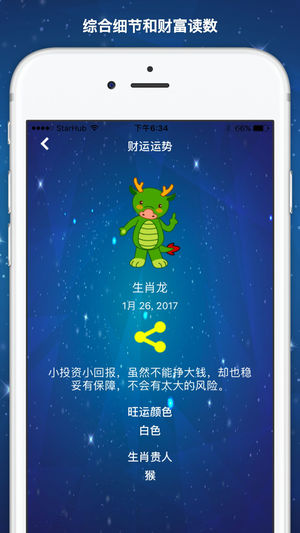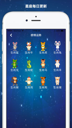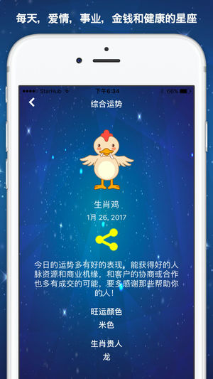 中国每日星座是最先进、最星座iPhone和iPad的应用程序。中国每日星座会给你的生肖动物标志使用基于农历星座每天的运势。 它的时间来检查您的财富在今年的公鸡2017。 特征 - 你的星座每日运势 - 日常的爱情,事业,健康,金钱运势 - 2017生肖运势 - 每天更新-星座 - 星座每日更新通知 - 通过脸谱网、微博、推特,WhatsApp, Snapchat, Instagram, Kik,微信分享任何星座、电报等。 - 每日星座在英文和简体中文 - 大鼠星座运势、 牛星座运势、 虎星座运势,兔星座运势、 龙星座运势、 蛇星座运势、 马星座运势、 羊星座运势、 猴子星座运势、 公鸡…