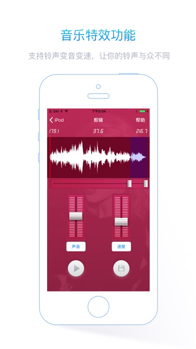 ==最后一天半价!赶快下载吧!== 支持iOS 10! 手机铃声制作利用iPhone/iPod音乐库里的音乐制作iPhone的各种铃声,还可以对MP3档进行任意时间段的切割,也可以把多个MP3档合并成一个档。轻松制作手机铃声,剪辑合并音乐,将自己喜欢的音乐串烧起来,就用手机铃声制作吧! 主要特征: * 将你的iTunes音乐库中的音乐转换成铃声 * 轻松设置铃声,彩铃,短信,闹铃. 还可以给特别的联系人设置单独的来电铃声哦! * 剪辑合并音乐,将喜欢的音乐串烧起来 * 变声变速实时动态调整 * 简单出色,功能实用!不管你是专业音乐人或是音乐小白,都能轻松玩转。 注意:这个App只是一个铃声制作工具,你必须辅助使用计算机上的iTunes软件才可以把制作好的铃声设置到iPhone上。