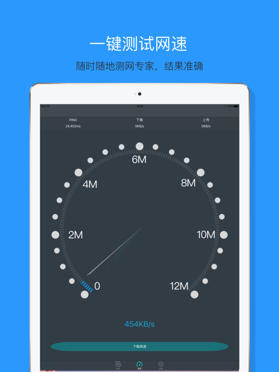 ==最后一天半价!赶快下载吧!== 支持iOS 10! 测网速是一款为万千手机用户提供网络测速,宽带测速,专业的网速测试神器。完美支持无线网络,移动网络的上传下载的网速测试,一键即可完成,随时随地的测速专家。 专业的网速测试、Ping,3G,4G,Wifi测速工具,结果准确,简单易用! 【功能特点】 1、检测手机网速,2G、3G、4G、Wifi网速一测便知; 2、单独的Ping测试功能,可随意测试时延; 3、用专业的网速测试方法,优化手机上网速度; 4、保留历史网速测试的详细结果,轻松查看以往测试数据。