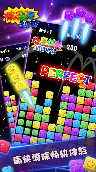 ◆ 1.无关卡限制 自动保存 ◆ 2.新道具 实用的接关功能 ◆ 3.画面和可玩性优于任何一款同类游戏 让我们做一个最懂你的游戏 世界排行榜 跟好友一起挑战最高分吧 点击2个或更多颜色的星星进行选择 再次点击选择的星星进行消除 同色的星星越多,得到的分数越多 谨慎选择,冲击最高分
