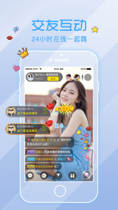 妖妖直播为大型美女帅哥娱乐直播平台! 7×24小时全天候直播,海量美女帅哥主播与你实时互动,聊天交友! 一起聊天吐槽谈心事,嗨歌炫舞玩游戏! K歌热舞乐器聊吧全新上线,让你尖叫连连嗨翻天 主播MV,由你冠名!活动综艺随时看,不再因为错过而遗憾! 主播云集,男神女神,热辣火爆,文艺清新,草根偶像,BoBo这里全都有! 萌妹鲜肉,娱乐综艺达人、实力唱将欢乐逗咖,尽享别样风情! 随时随地想看就看,约会主播成为朋友!新鲜动态,一目了然,主播私密生活,你也能参与! 拒绝闷骚,想撩就撩!只要功夫好,主播撩到手!心动牵手,想上就上,聊骚交友! 壕礼道具炫酷座驾,彰显贵族气质!撒抢红包赢好运! 随时随地聊天交友,随心所欲享受直播! 开启妖妖直播,让你从此不寂寞!