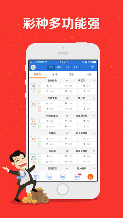 送!送!送!送!送! 所有用户送10~120元红包(见公告) 竞彩足球彩票,全国首家命中500万的购彩平台, 自2003年上线以来,诞生了上万位百万富翁! 本彩票平台为您提供专业的竞技彩彩票代购、开 奖查询、彩票资讯、竞彩彩票数据分析以及即时 比分直播等功能和服务,是一款实用、方便、可 靠、专业的足球竞技彩彩票客户端。 ---【专注竞彩】--- ◆彩票投注◆ 竞彩足球、胜平负、让球胜平负、比 分、进球数、半全场、混合过关投注、篮球彩票; ◆专家推荐◆ 汇聚大神,人人推荐,人人赚钱; ◆竞彩天下◆ 五大联赛,全球杯赛,尽在掌握; ◆充值提款◆ 安全充值,银行快捷,快速开奖; ---【功能特色】--- 1.即时比分:快、准、全,与现场同步,直通赛场。 2.投注功能:奖金优化、追号、过滤,专业造就高中奖率。 3.开奖结果:即时更新彩票开奖公告,一机大奖马上有。 名符其实“数据专家 赢家平台”,十多年来深受彩民喜爱。 (注:以上活动奖品与苹果公司无关)