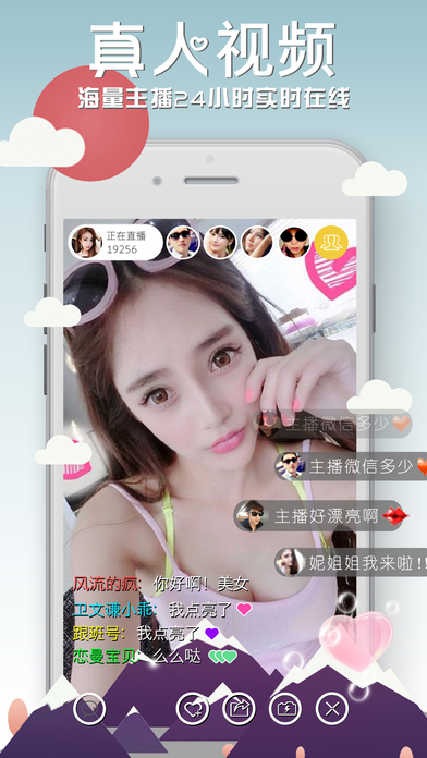 火爆真人美女视频直播,17以下禁入! 真人美女在线互动直播,超嗨的美女秀场,青春性感的美女主播在线展示才艺,在这里你可以与女神、萌妹、清纯的女生面对面互动交友。 【玩法特色】? (1)看直播,直播k歌唱响,喊麦搞怪,直播逗趣,随时随地拿出手机就能看心仪对象在线视频才艺秀,免费观看欣赏。 (2)享畅聊,免费即时沟通,支持一对一、一对多、悄悄话,胡聊海聊谈天说地,畅所欲言,欢聚一堂。 (3)听音乐,当下流行歌曲随意听,更能点唱自己喜欢的歌,直播互动听歌尽享。 (4)表爱慕,免费送礼、送礼物、做管理、做粉丝,海量高颜值主播、好声音、可爱小清新等让你尽享高贵体验。 (5)玩游戏,抢红包、砍镖车、切水果、下五子棋,同主播一起玩游戏,从此不孤单。 (6)享尊贵,酷炫座驾、进场动画、富豪等级。