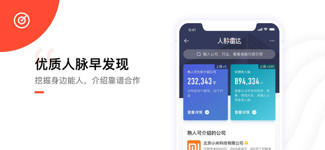 2亿人的商业资源和社交平台,新型商业社交商务办公软件。 找公司、找合作、找人脉、找工作,就上「找到」APP。 谁在用「找到」? 阿里巴巴、京东、51job、招商银行、中国银行、陆金所、云之家、新浪、赶集网、中国平安、万科、上汽集团、大连万达、华为、安邦保险、联想集团、海航集团、太平洋保险、冀中能源、恒大、碧桂园、领英等公司的人才都在用「找到」APP。 强大的「找到」帮你拓展和利用好友圈的人脉力量,告诉你通讯录联系人可帮忙介绍哪些公司/协会/学校的联系人。同时「找到」覆盖了1.8亿家企业深度信息、1亿企业主动公开的联系电话、千万级商业人脉资源… 不管您是老板高管、企业员工、白领精英还是在校…