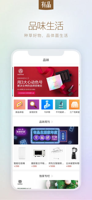 小米线上精品生活购物平台,坚持做感动人心,价格厚道的好产品! 小米有品是小米精品生活购物平台,也是小米“新零售”战略的重要一环。依托小米生态链体系,延续小米的“爆品”模式,用小米模式做生活消费品。作为一个开放但品控严格的电商平台,除了小米、米家及生态链品牌,有品还引入大批优质的第三方品牌产品,并扶持三方品牌独立发展,共同为用户打造有品质的生活。 有品涵盖家电、家居、智能、影音、服饰、日用、餐厨、出行、文创等十余个品类,严格把控品质源头的同时,精简同品类产品数量,真正做到“好东西不用挑”。【小米众筹】也是有品平台的一大特色,智能科技前沿酷玩的产品为用户带来更多尝鲜体验。 【有品特点】 不用…