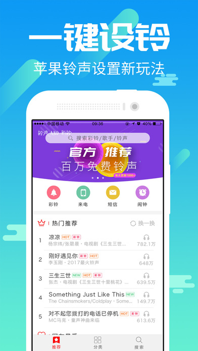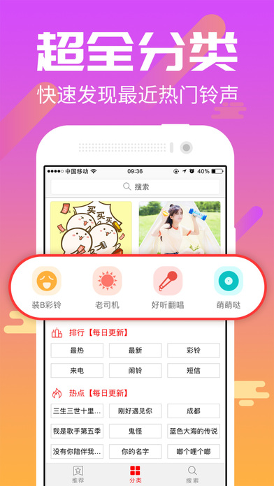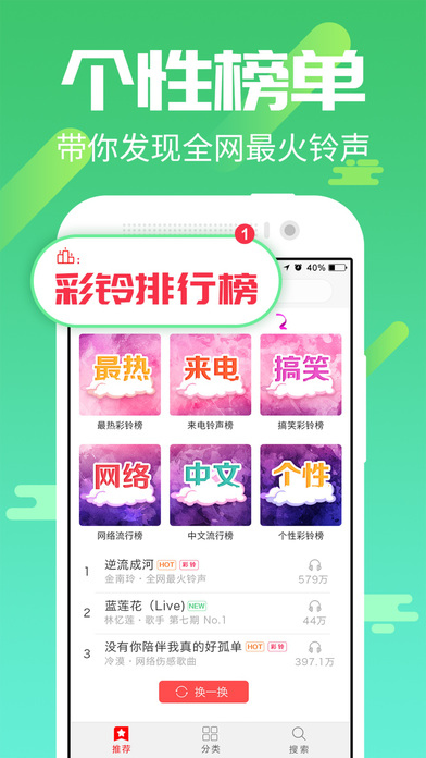 铃声大全-手机铃声多,手机铃声新,手机铃声全,我的手机铃声最好听 铃声大全是一款专注于打造优质手机铃声的APP,铃声大全没有那么多复杂的功能,就是手机铃声又多又好听 【手机铃声资源多】 铃声大全精选200万首高品质正版铃声,每首铃声都精彩,每首铃声都好听! 【手机铃声内容新】 每日为你更新最热门最流行的手机铃声,铃声好玩到根本停不下来! 【手机铃声任性搜】 强大的铃声搜索功能,轻轻一点,只有你想不到的铃声,没有你找不到的,就是这么任性! 【手机铃声分类赞】 提供多样热门手机铃声分类任你筛选,中文流行、欧美日韩、DJ舞曲、幽默搞笑、网络神曲、影视金曲、游戏动漫、经典老歌一个都不少,轻轻松松玩转手机铃声! 【手机铃声最好听】告别千篇一律的手机铃声,告别枯燥无味的重复铃声,随意选择你喜欢的手机铃声吧,你的手机铃声最独特、最好听! 每日更新1000+好玩好听的手机铃声,更多美妙铃声尽在铃声大全!