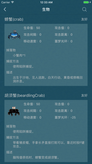 一款基于饥荒海难版的百科大全。游戏资料大全,为饥荒玩家提供详细的游戏资料和无尽乐趣。 本软件不是饥荒游戏,只是为饥荒海难版写的攻略,方便大家更快的熟悉饥荒海难,了解更多的物品属性,增加游戏的可玩度。 无广告!无广告!无广告!重要的事情说三遍! 声明: 这是一个非官方的饥荒海难版大全,所有资料、商标和版权等信息归饥荒官方所有。本软件仅为玩家提供更多信息和游戏乐趣。