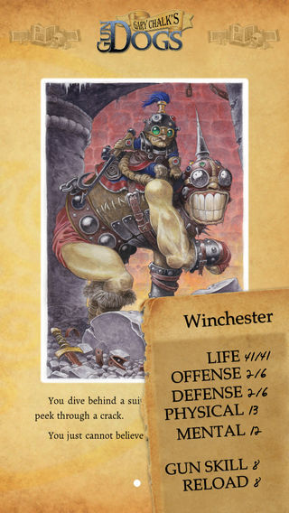 Tin Man Games presents Gary Chalk’s Gun Dogs, a gamebook with art by the legendary illustrator Gary Chalk, famed for his work on the legendary Lone Wolf series. Co-creating Gun Dogs is Jamie Wallis of Greywood Publishing. You have been charged with treason against the Empire and placed on death row. The Emperor offers you a choice: die a slow and humiliating death or serve as a Gun Dog, a soldier assigned impossible missions and tethered by a magical collar. The collar will choke you to death if you disobey your mission orders. You will be sent where an army cannot go and an angel would fear to tread. You are expendable. You are a Gun Dog. ** REVIEWS ** Packed with action, intrigue, and gore - and excellently told and illustrated by Wallis and Chalk, respectively - Gun Dogs could well be Tin Man's most accomplished gamebook to date. - POCKET GAMER - 9/10 - GOLD Award! In a sense it’s a familiar world for those used to Fighting Fantasy tales, but refreshingly, this is a story one hasn’t traveled along before. It remains at the same level of quality however, with the artwork proving a particular delight. Fans of the Lone Wolf books will particularly appreciate the work, given both come from the same illustrator. - 148 APPS - 4/5 Presents a detailed and pleasingly old-school fantasy world, bought vividly to life with Gary Chalk’s excellent artwork. Fun and quick to play through, with decent replay value. - GAMEZEBO - 4/5 The fact that Gary Chalk, the illustrator behind the original Lone Wolf books, is involved in this production is more than enough to get interested in Tin Man Games' newest release. The fact that it's an amazingly-written story is more than enough to keep you playing it over and over again. - DIGITALLY DOWNLOADED - 4/5 ** FEATURES ** •Includes all the interactive reading and gameplay features found in the previous Gamebook Adventures titles. •Take out foes with your Gun Dog’s three-chambered pistol – the latest in the Empire’s technology! •Awesome artwork by Gary Chalk brings the Empire of the Five Cities to life! •Read the story and dictate the direction of the story! •Options based on who you have met, where you have visited and what you have found. •Lots of achievements to collect and artwork to find throughout the book. These are placed on your achievement wall. •Three difficulty levels. Read the book casually by being able to move around freely or crank up the difficulty and be an advanced gamebook player. •Auto-mapping tracks your progress across the Steppe! Gary Chalk’s Gun Dogs has been created using Tin Man Games’ critically acclaimed Gamebook Adventures Engine featuring: •Read the book horizontally or vertically on your tablet. •An automated Adventure Sheet to keep track of stats and inventory. •Realistic physics based dice rolling. Shake your device! Artwork gallery. Find an illustration in the gamebook and be able to access it full-screen forever. •Bookmarking system which saves your position in the gamebook, much like putting your fingers between the pages to remember your previous page when reading old-school gamebooks! •Specially composed soundtrack and sound effects.