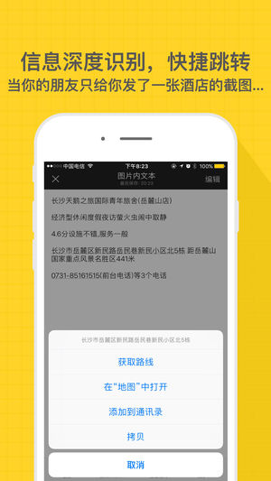 一款全新设计的快捷提取图片中文字信息的OCR软件。适用于转纸质文档,实体书读书笔记,拍照记录信息,截图内容提取等场景。 主要特性: 1. 高精度文字识别技术。使用云端OCR引擎,识别效果卓越。 2. “先拍照,再对焦”。拍完再自由选择查看整篇内容或者单独一个段落。 3. 识别结果自动分段,尽可能方便重新排版。 4. 支持OCR快捷校对,可以在不离开编辑区域的情况下方便与原文对照修改,弥补OCR的不完美之处(即使这里的OCR效果已经非常好)。 5. 识别结果可编辑且自动保存为历史记录,方便后续快捷访问。 6. 支持多张图片识别结果合并。可按时间早晚顺序合并,且合并过程中还可以对多张原图同时进行…