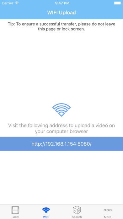 1. Support play all common video formats; 2. Personal privacy protection: you can set the password, you need to enter the password to open this APP; 3. Support WIFI transfer: Use WIFI, to transmit video video on your computer to this APP;