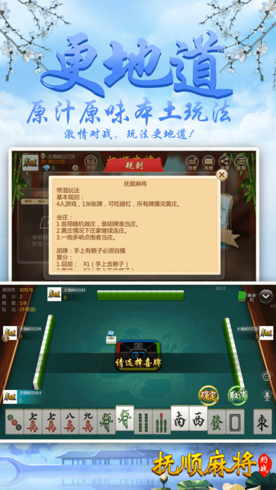 抚顺人民期待已久的包房麻将震撼出世! 【最地道】 地道抚顺麻将玩法,采用抚顺地区最流行的麻将规则。还有方言配音,要玩就玩抚顺人自己的麻将! 【最好玩】 再也不用苦于配桌,全民手机时代,你可以再手机上随时随地和亲朋好友搓麻将,是传统麻将馆的有力补充。快和亲朋好友一起开房,决一高下吧! 【最稳定】 大厂出品,确保游戏过程更加稳定,专心玩游戏,没有掉线卡顿烦恼。 【最靠谱】 可以录像回放,GPS预警,杜绝外挂,真实可靠。 【最智能】 智能提示、界面大方更具人性化,支持智能单独、分开支付房费。
