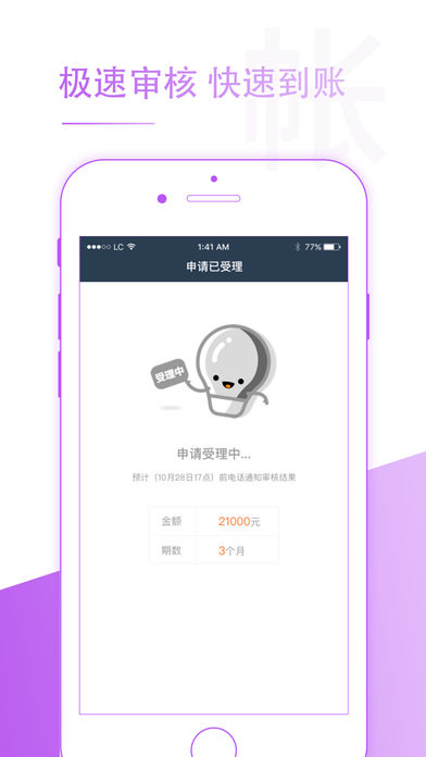 现金贷款app,缺钱必备,凭身份证平均可借现金5000元。 1. 极速审批:最快1分钟完成审核,2分钟放款。 2. 门槛极低:无需抵押担保,不需要提交复杂的资料,有身份证就能借。无需面签,手机点几下就把钱借了。 3. 费率优惠:有借有还,不光再借不难,费率还不断打折。 4. 凭拍拍贷、用钱宝、小花钱包、你我贷、我来贷、豆豆钱、宜人贷、蚂蚁花贷、蚂蚁借呗、钱有路、给你花、现金白卡、现金卡、极速现金侠、招联金融好期贷、贷上钱、2345贷款王、快易花、蓝领贷正常还款的贷款账户,可大大提升您获批的概率以及授信额度。 5. 若芝麻信用表现良好,则更大几率获得高额授信。