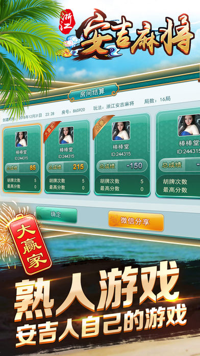 《安吉麻将》是众乐乐为安吉人民打造的一款掌上麻将游戏,我们为安吉的小伙伴们带来了最经典的花牌玩法。我们坚持要做一款安吉人民自己的游戏! ***************游戏特色**************** 地道的安吉玩法 原汁原味的地方性玩法:花牌、财神;整体游戏节奏明快,计算快捷,绝对让您欲罢不能! 熟人之间的公平竞技 游戏中拥有了IP及地理位置限制功能,让我们对黑幕,作弊说no! 真3D游戏 真3D,旋转牌桌,视角切换,犹如身临其境。 实时语音通讯 游戏中您可以与家人朋友实时进行通信,也可使用地道的快捷语,让沟通零距离!